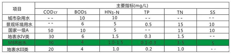一般来说,经过MBR工艺处理的污废水几乎检测不到悬浮物,浊度小于1。结合了膜分离技术的生化处理工艺,MBR产水几乎可以应用于所有非饮用型回用领域--农业绿化灌溉、锅炉补给水(RO预处理)和工业工艺给水等。同时MBR工艺可以有效减少病原性细菌的存在,例如大肠杆菌和隐孢子虫属。
